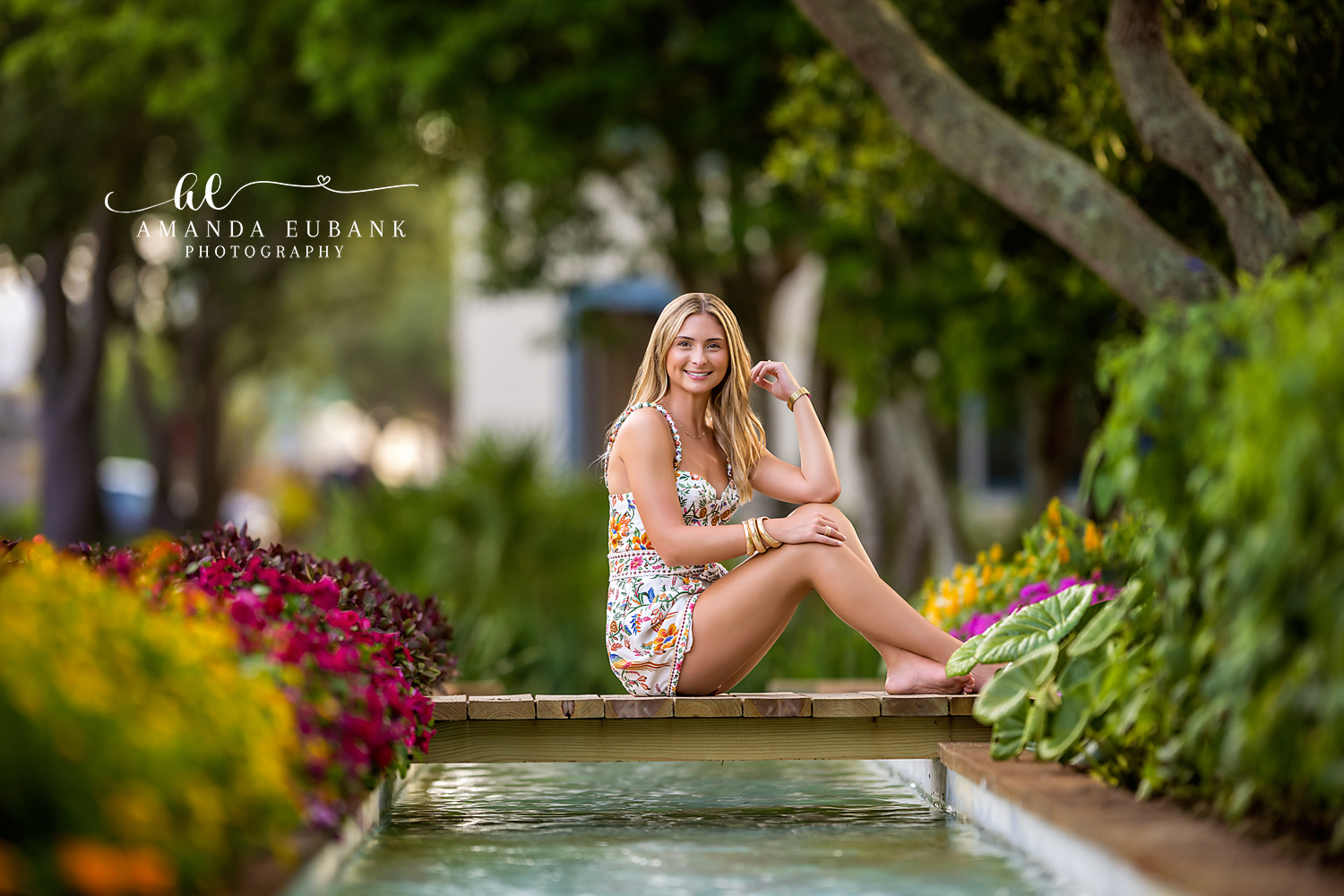 Watercolor Senior Session - Miss S at the Watercolor Gardens There is something magical about a senior session captured among the lush paths and fountains around the Watercolor Gardens. These images from Miss S’s session showcase bright blooms, soft golden-hour light, and relaxed, confident posing, everything you want from a senior photographer who knows how to blend portraiture with the