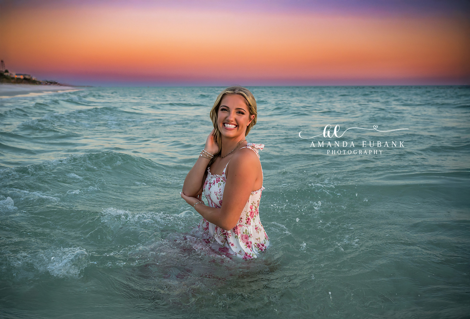 WaterColor gardens to sunset, a senior session with Miss E Sunset sessions at WaterColor are the kind of shoot that remind me why I love photographing seniors. For Miss E we started among the lush, colorful gardens in the Watercolor Resort and finished with the soft warm light of the Gulf, and the images show that perfect mix of playful